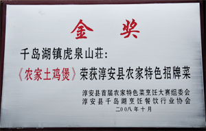 千岛湖镇虎泉山庄座落于中国著名的旅游圣地杭州淳安千岛湖,具体位置位于杭千高速淡竹出口与国家水上皮划艇训练中心毗邻。千岛湖镇虎泉山庄集休闲 观光 娱乐 品尝于一体。依山尔筑,因虎泉飞瀑而得名。坐落于山水之间,空气清新,环境优美,来到此处休闲,简直就是走进了“世外桃源”,进入了人间仙镜,让人留恋忘返。田园诗人蒋樟炎有感于虎泉山庄之美而作诗一首;“靓丽山庄秀水旁,路临高速达苏杭。危峰含翠鸟声悦,嘉木争荣花果香,怪石奇装瑞润水,轩亭古朴